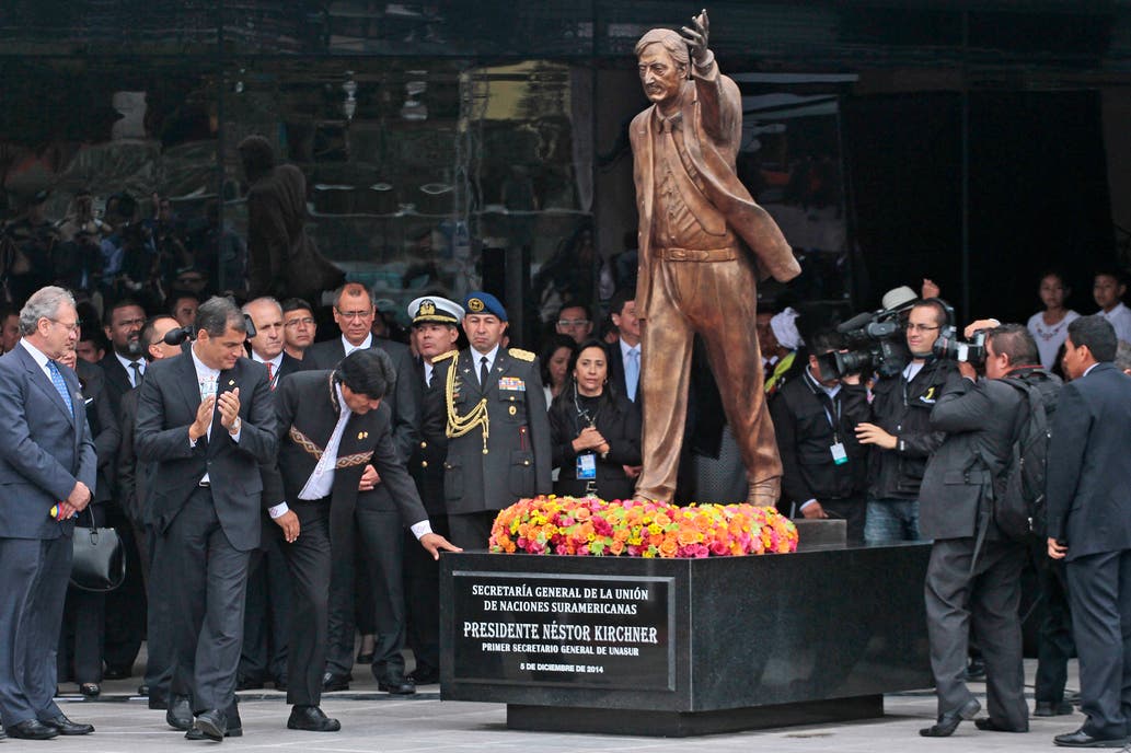 Lamentablemente la Argentina sigue siendo surrealista y ahora se nos presenta la figura de Néstor Kirchner, que desde que se la construyó, estuvo en varios lugares. Estuvo en el exterior hasta que en Ecuador la declararon no grata, la trajeron, la iban a destruir, pero fue rescatada. Posteriormente se la colocó en el Centro Cultural Kirchner y ahora, en plena decadencia del Kirchnerismo la esposa, ex presidenta y vicepresidenta se la llevó a otro lugar, en este momento no sabemos dónde la tiene y la colocará; típica reacción de Cristina Fernández quien creyó durante 20 años que todo lo que pasaba por el estado era suya.