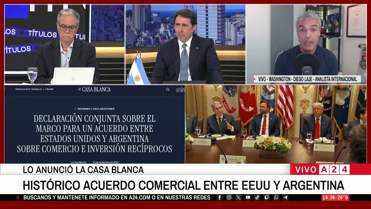 “En busca de una asociación económica más sólida y equilibrada, Estados Unidos y la Argentina han acordado un acuerdo marco para profundizar la cooperación bilateral en materia de comercio e inversión. Este marco para un Acuerdo sobre Comercio e Inversión Recíprocos busca impulsar el crecimiento a largo plazo, ampliar las oportunidades y crear un entorno transparente y basado en normas para el comercio y la innovación“, agrega el comunicado, publicado en el mismo día en que la Casa Blanca anunció otros acuerdos comerciales, con Guatemala, Ecuador y El Salvador.