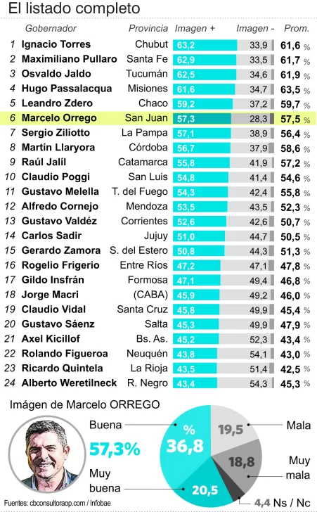 La clasificación se basa en la valoración positiva de cada gobernador, dividiéndose en tres grupos: los mejores, los del medio y los peores. En esta edición, 16 gobernadores lograron un balance de imagen favorable, mientras que los 8 restantes enfrentaron un saldo negativo.
